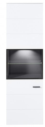 Vitrine en bois et MDF 1 porte, Madeline Blanc / Graphite, l60xA36xH199 cm
