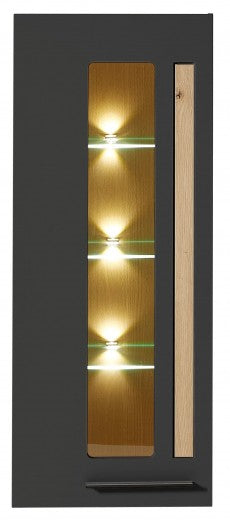 Vitrine suspendue en MDF, avec 1 porte et LED incluses Loftis Graphite / Chêne, l52xA37xH128 cm