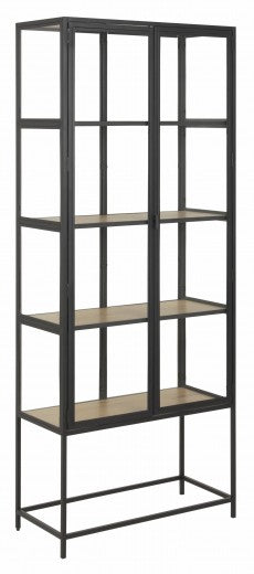 Vitrine métal et verre 2 portes Seaford Noir / Chêne, l77xA35xH185,6 cm