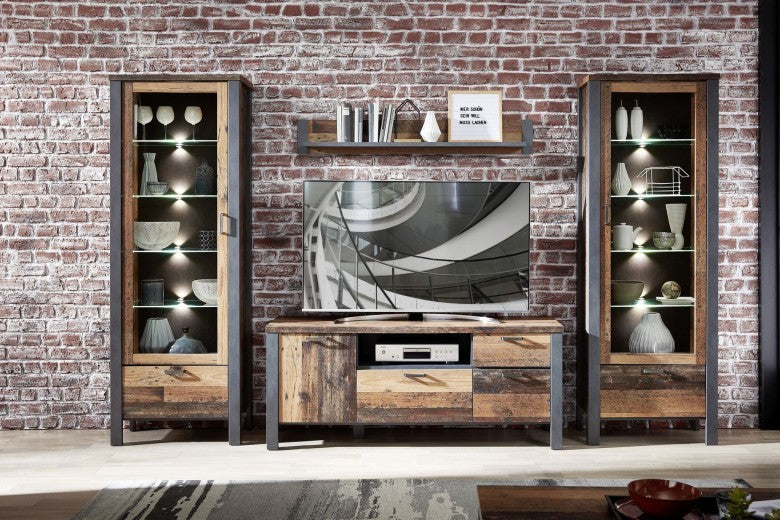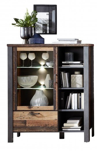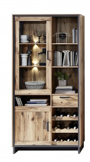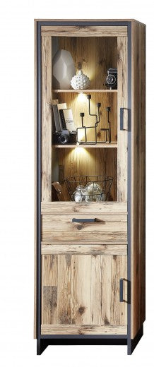 Vitrine palette, avec 1 porte et 1 tiroir Chelsea Naturel / Graphite, l69xA40xH194 cm