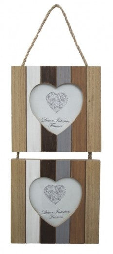 Cadre photo décoratif, en MDF Lignes 2 Coeurs Naturel, 15 x 43 cm