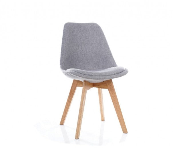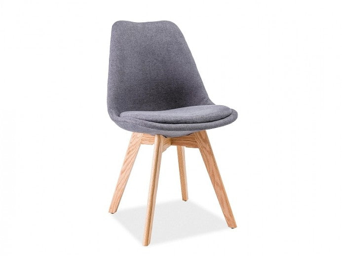 Chaise capitonnée tissu et pieds bois, Dior Gris Clair / Chêne, l48xA40xH83 cm