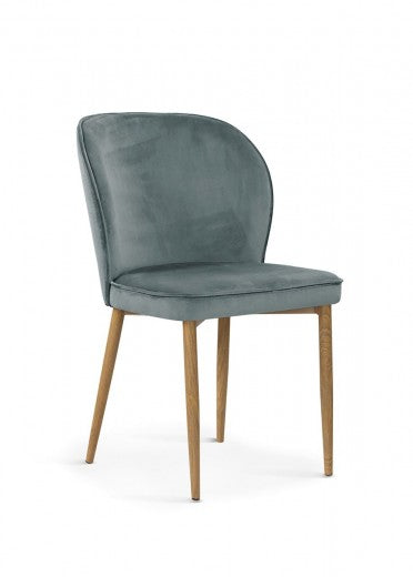 Chaise capitonnée tissu et pieds métal Shelly Velvet Gris / Chêne, l58xA63xH86 cm