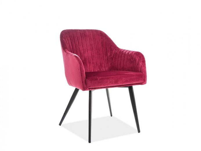 Chaise capitonnée tissu et pieds métal Elina Velours Bordeaux / Noir, l59xA62xH81 cm