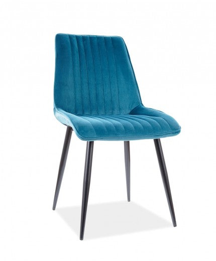 Chaise rembourrée en tissu avec pieds en métal Velours Danois Turquoise / Noir, l56xA60xH80 cm