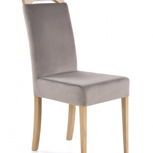 Chaise rembourrée en tissu, avec pieds en bois Clarion Gris / Chêne, l42xA58xH97 cm