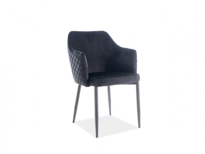 Chaise rembourrée en tissu et pieds en métal Astor Velours Noir, l55xA54xH83 cm