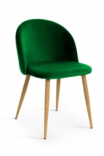 Chaise rembourrée tissu et pieds métal Goda Velours Vert / Chêne, l54xA58xH87 cm