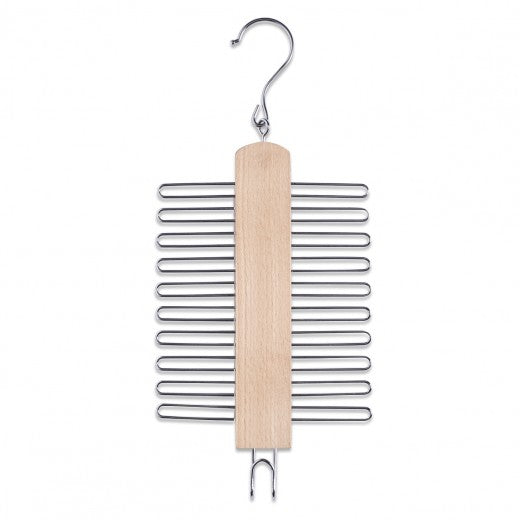 Cintre métal et bois pour cravates, avec 20 crochets, Ceinture Naturelle, l16xH39 cm