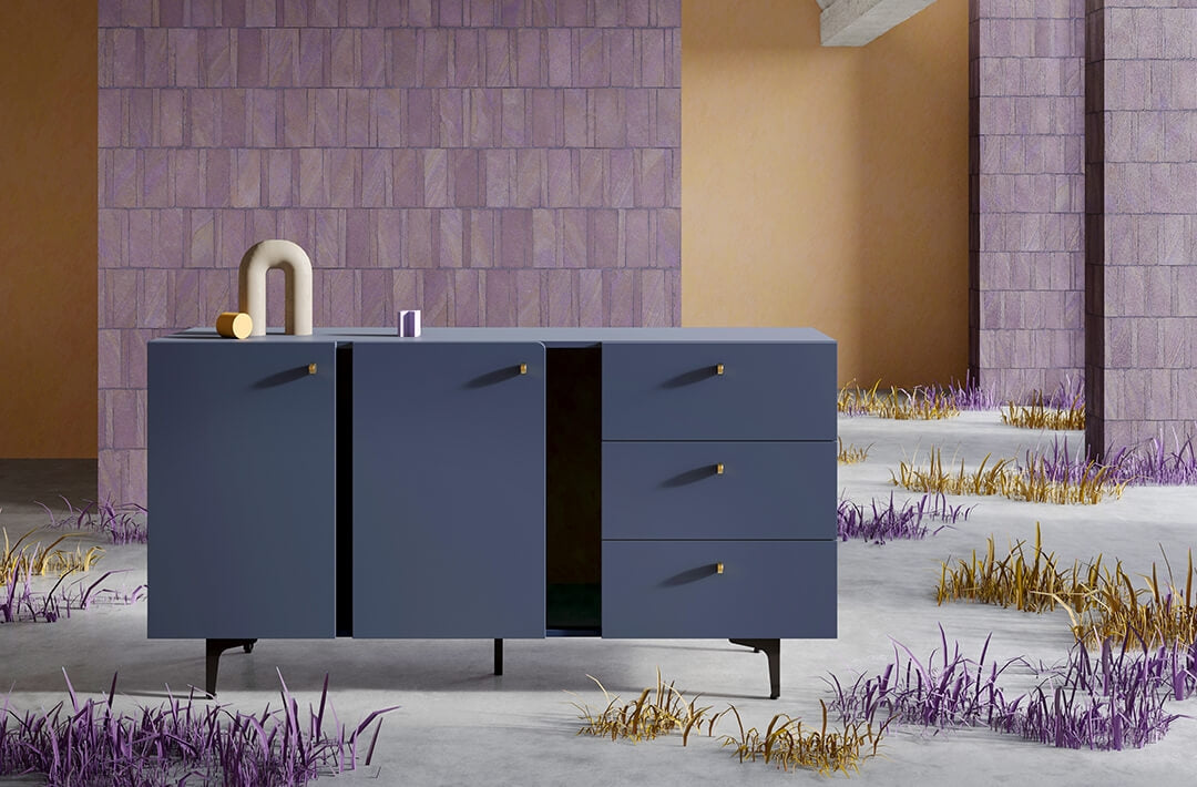 Commode en bois avec 4 tiroirs Idea 10, Gris Mat, L100xW42xH90 cm