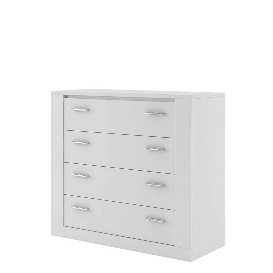 Commode en bois Arti 10 avec 4 tiroirs, Blanc Mat, L100xl42xH90 cm