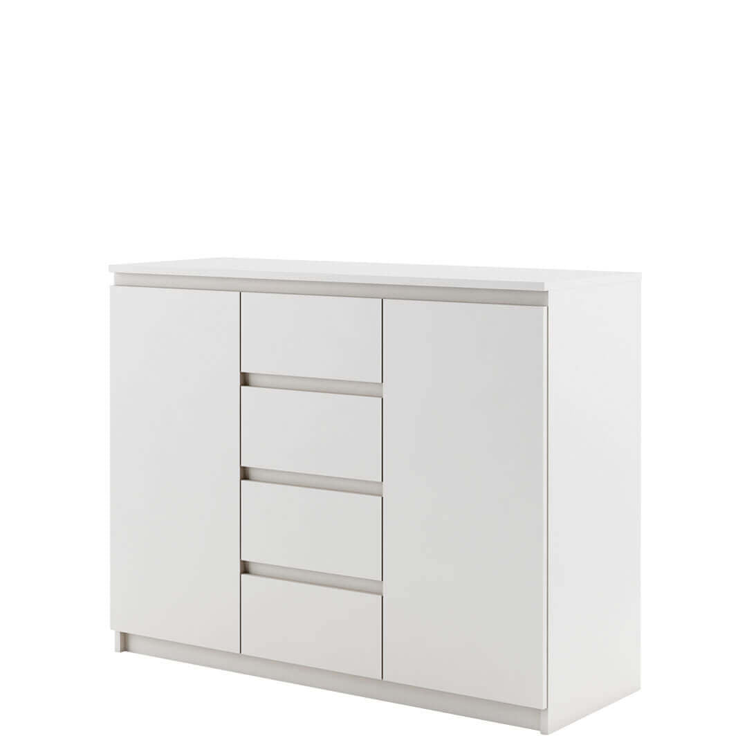 Commode en bois avec 4 tiroirs et 2 portes, Idea 04, Blanc Mat, L109xW40xH85 cm