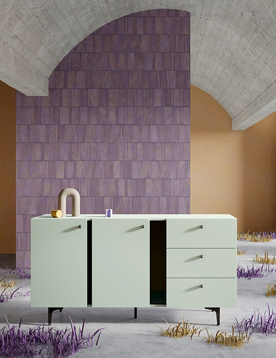 Commode en bois clair à 2 portes et 3 tiroirs, Coloris Medium CS 02, Vert Menthe / Noir, l160xL41xH84 cm