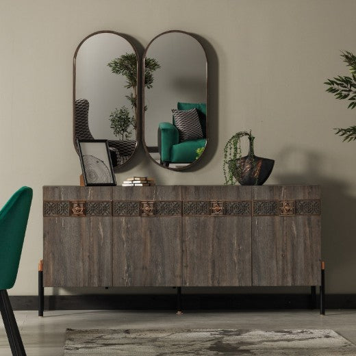 Commode pâle et métal, avec 4 portes Wella Gris / Noir, l180xA48xH85 cm