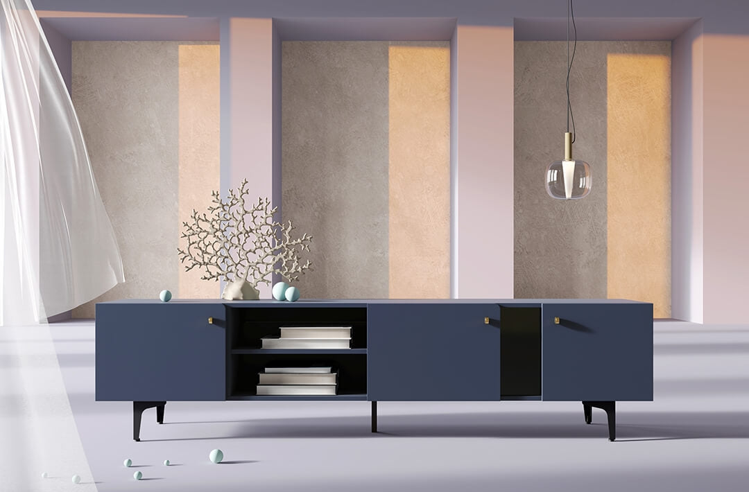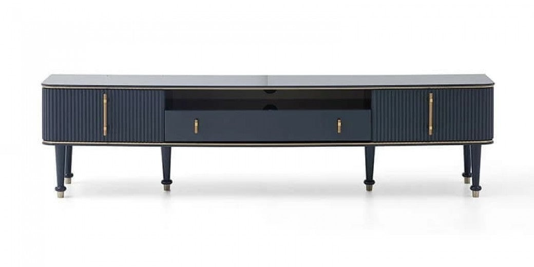 Commode TV en bois avec 3 portes, Colors Large CS 05, Bleu marine mat / Noir, L200xl41xH50 cm
