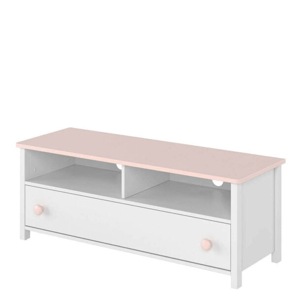 Commode TV en bois, avec 1 tiroir pour enfants et jeunes Luna 13, Blanc/Rose, l120xW42xH46 cm