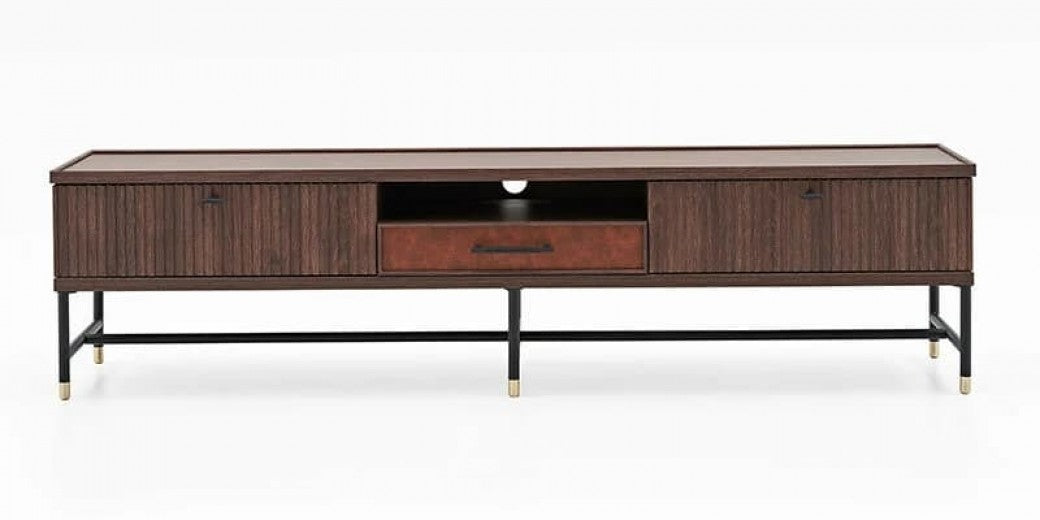 Commode TV en bois et métal, avec 3 tiroirs Matilda Noyer / Noir, l210xA49.9xH52.1 cm