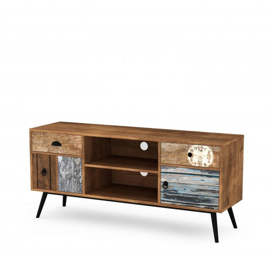 Commode TV en bois et MDF, avec 2 tiroirs Skylar Stejar, l140xA47xH51 cm