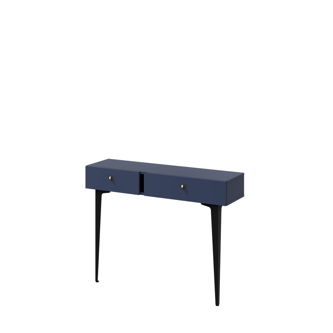 Console en bois clair avec 2 tiroirs, Coloris CS 07, Bleu Marine mat / Noir, L105xl30xH80 cm