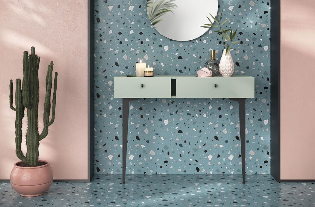 Console en bois clair avec 2 tiroirs, Coloris CS 07, Vert Menthe / Noir, L105xl30xH80 cm