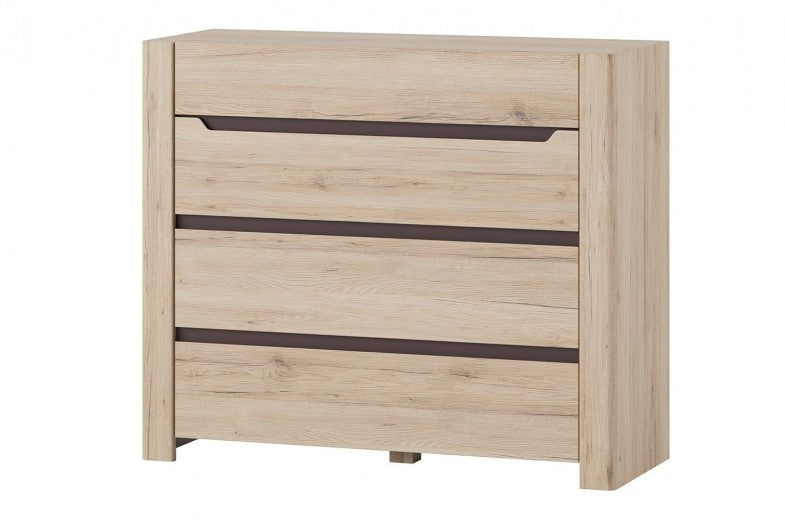 Commode, avec 4 tiroirs Desjo 11 Chêne San Remo, l110xA42xH93 cm