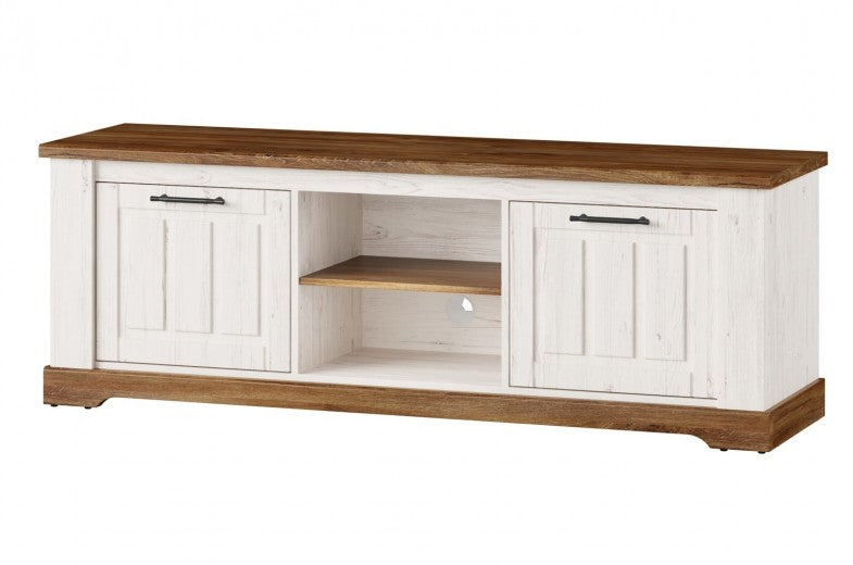 Commode TV en palette, avec 2 portes Country Small 25 Blanc / Chêne, l163xA45xH56 cm