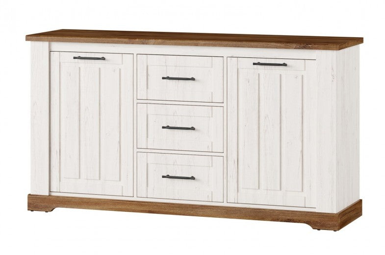 Commode, avec 3 tiroirs et 2 portes Country 45 Blanc / Chêne, l163xA45xH89 cm