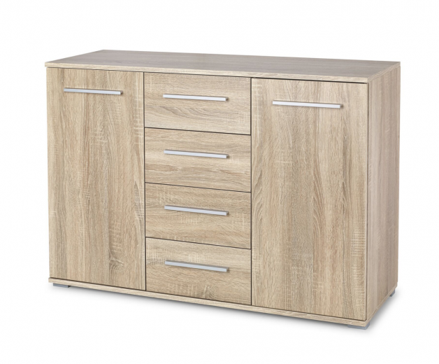 Commode, avec 4 tiroirs et 2 portes Desjo 10 Chêne San Remo, l170xA42xH93 cm
