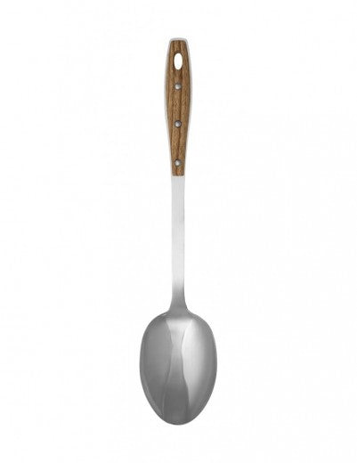 Cuillère de service en acier inoxydable, bois naturel, 34 cm
