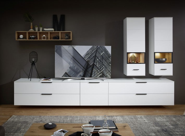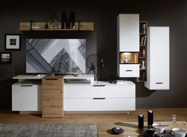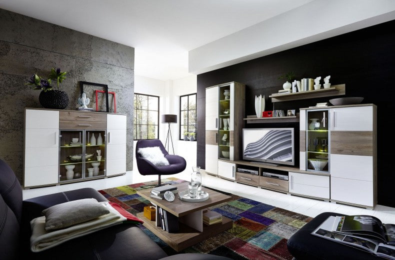 Ensemble de meubles de salon en bois et verre, 6 pièces, Futura, Blanc / Chêne Riviera
