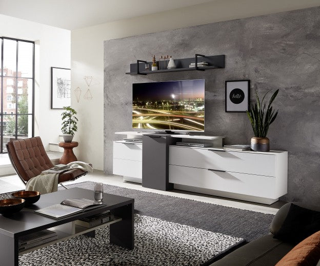 Ensemble de meubles de salon en aggloméré et MDF, 4 pièces Madeline Blanc / Graphite