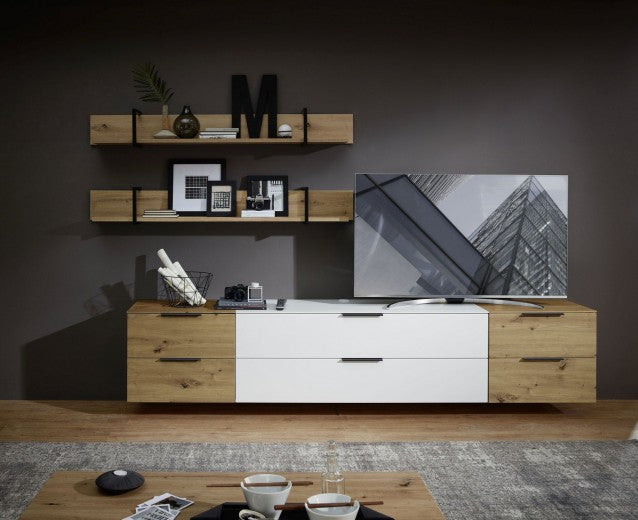 Ensemble de meubles de salon en aggloméré et MDF, 5 pièces Jenise Blanc / Chêne, l296xA50xH198 cm