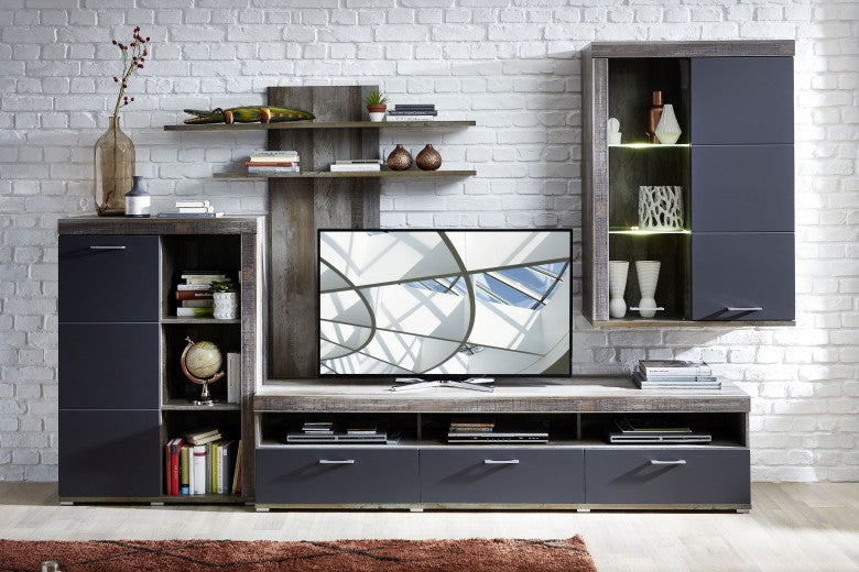 Ensemble de meubles de salon en aggloméré et MDF, 4 pièces Krone I Graphite / Natur