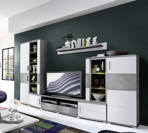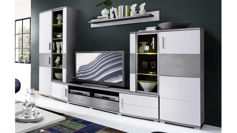 Ensemble de meubles de salon en aggloméré et MDF, 4 pièces Jenise Blanc / Gris, l296xA50xH198 cm