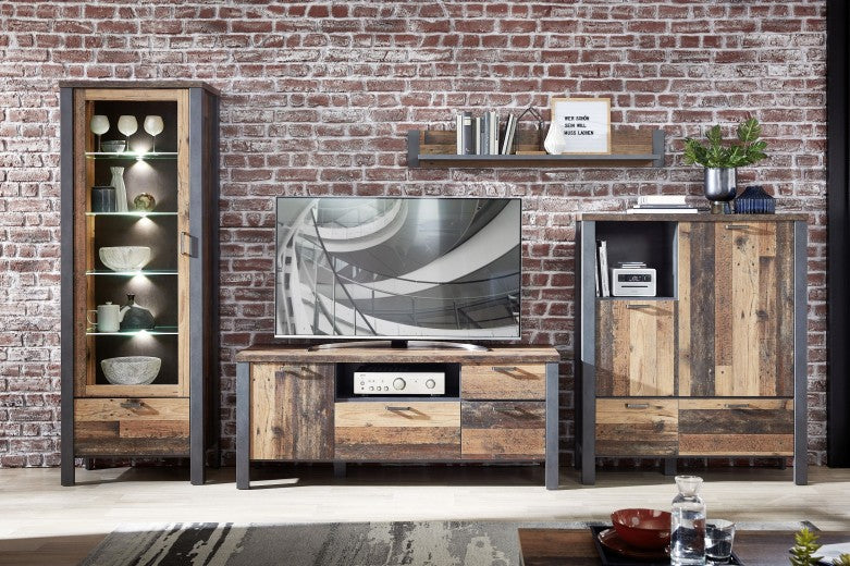 Ensemble de meubles de salon en aggloméré et MDF, 4 pièces Krone II Graphite / Natur