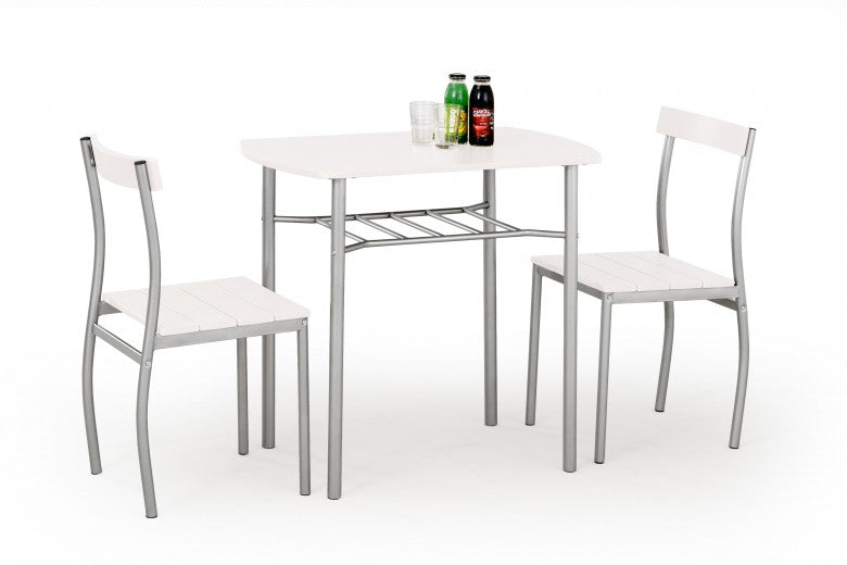 Ensemble table MDF et métal + 2 chaises Lance Blanc, L82xl50xH75 cm