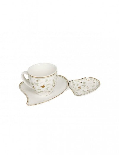 Ensemble de tasses avec soucoupe en porcelaine, Ali Dorate Alb, 2 pièces
