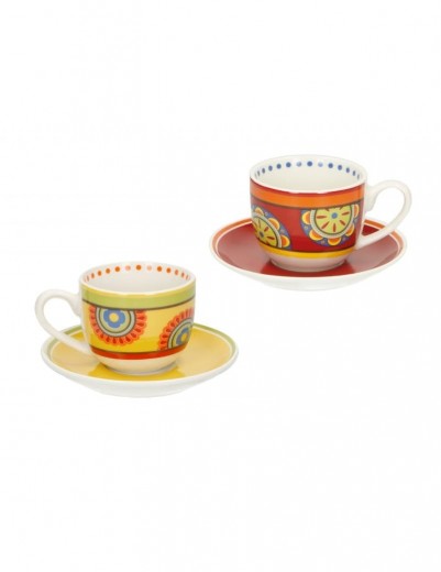 Ensemble de tasses à soucoupes en porcelaine, Mediterranea Rouge / Jaune, 100 ml, 4 pièces