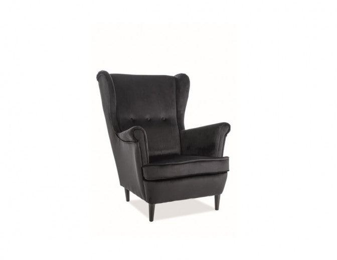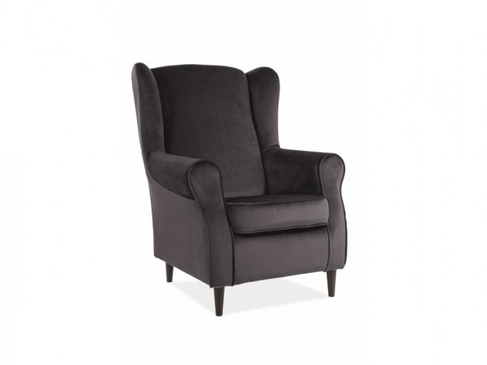 Fauteuil fixe tapissé de tissu et pieds en bois Lord Velvet, Noir / Wengé, l75xA85xH101 cm