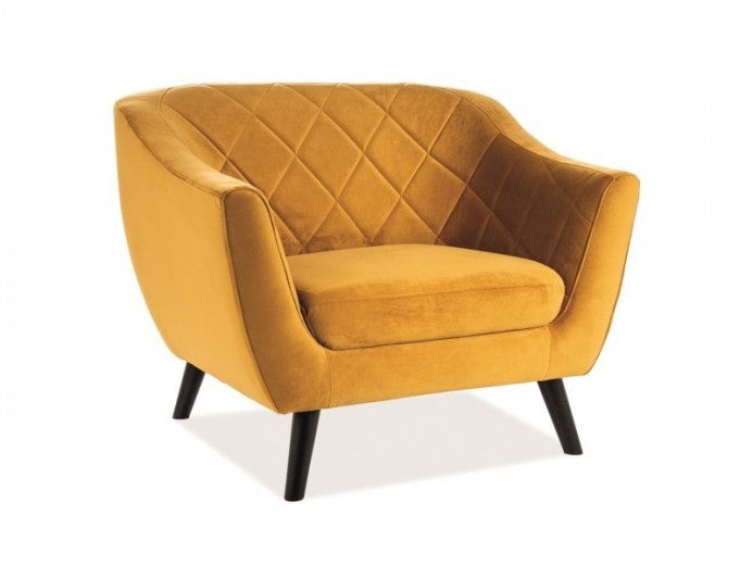 Fauteuil fixe tapissé de tissu et pieds en bois Molly 1 Velvet, Moutarde / Wenge, l105xA85xH83 cm