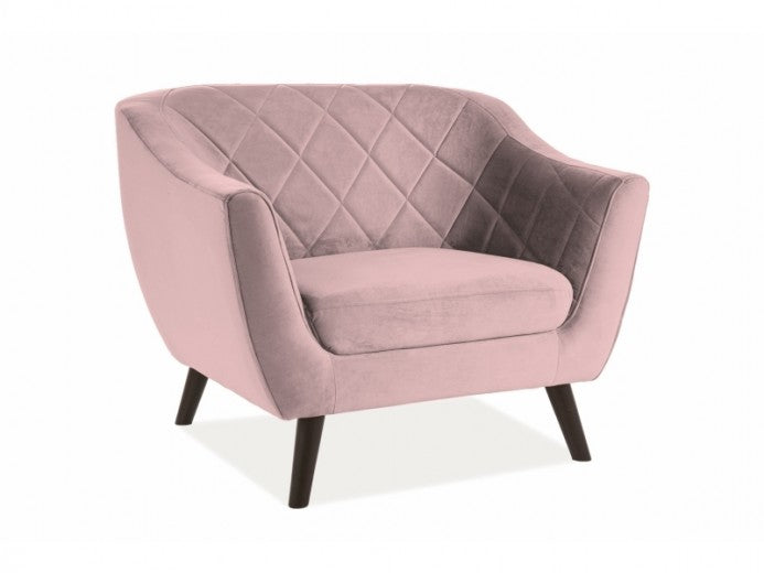 Fauteuil fixe tapissé de tissu et pieds en bois Molly 1 Velvet, Rose / Wengé, l105xA85xH83 cm