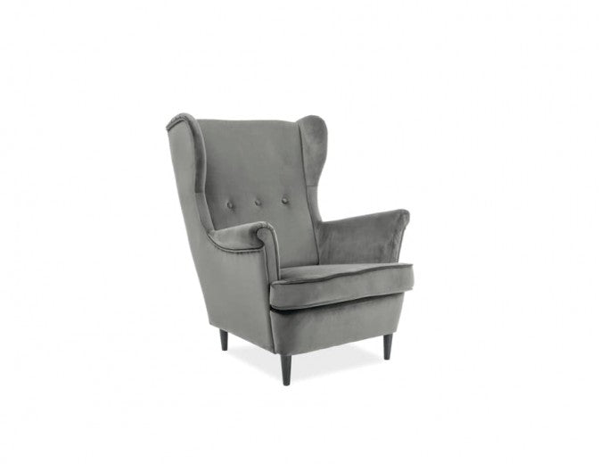 Fauteuil fixe tapissé de tissu et pieds en bois Lord Velvet Gris / Wengé, l75xA85xH101 cm