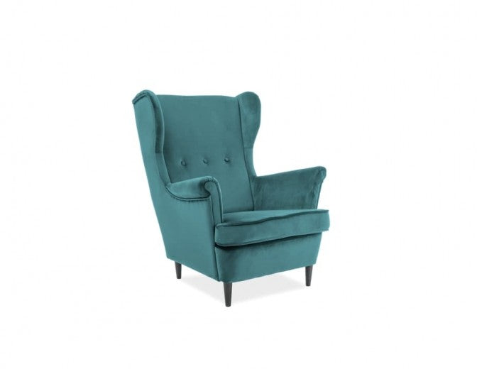 Fauteuil fixe tapissé de tissu et pieds en bois Lord Velvet Turquoise / Wenge, l75xA85xH101 cm