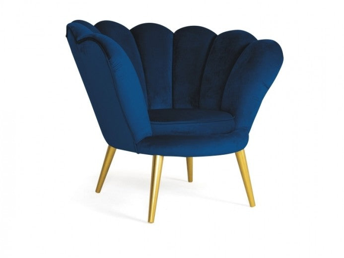 Fauteuil fixe tapissé de tissu et pieds en bois Trevor Velvet Bleu / Noir, l68xA66xH85 cm