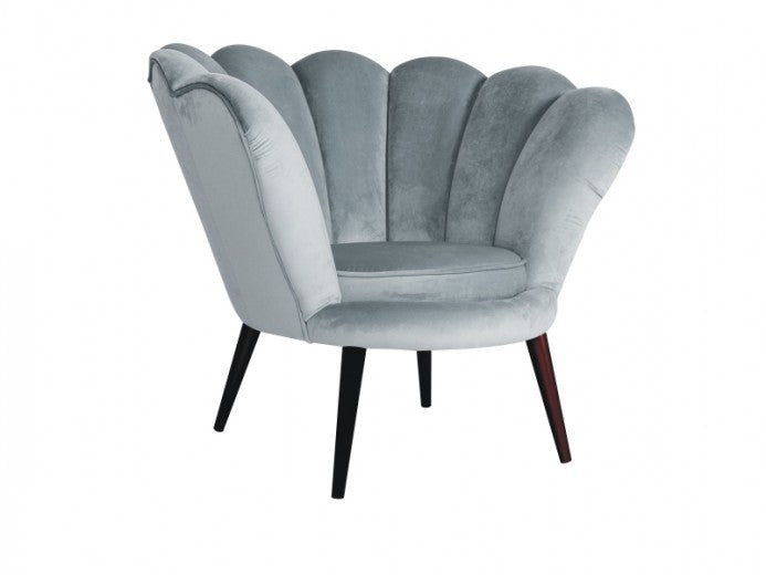 Fauteuil fixe tapissé de tissu et pieds en bois Velours Capri Argent / Chêne, l58xA60xH89 cm