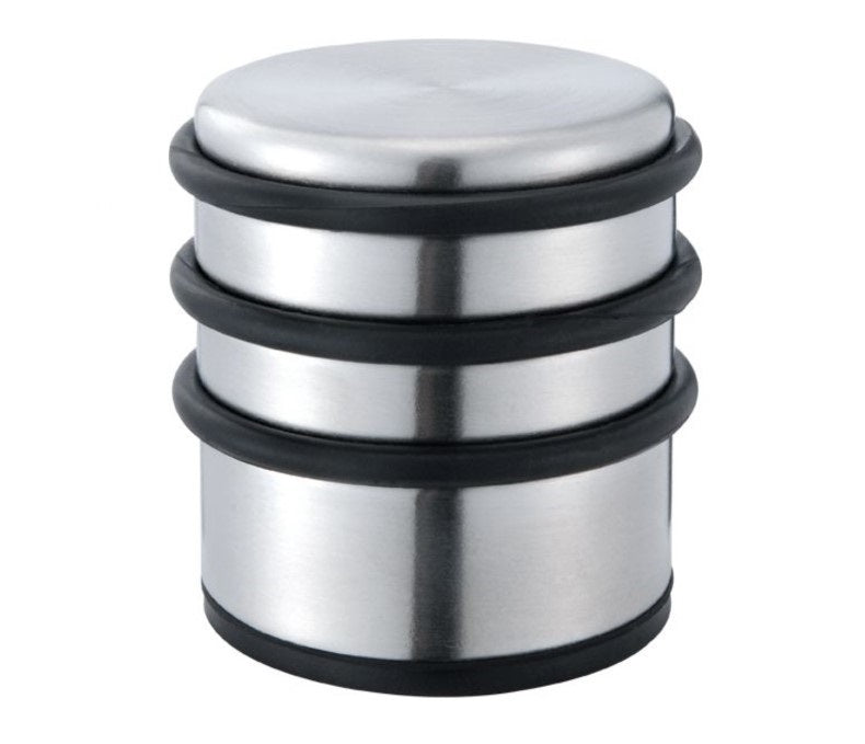 Arrêt de porte en métal et caoutchouc, Dia Tall D103 Chrome / Noir, Ø7xH6,7 cm