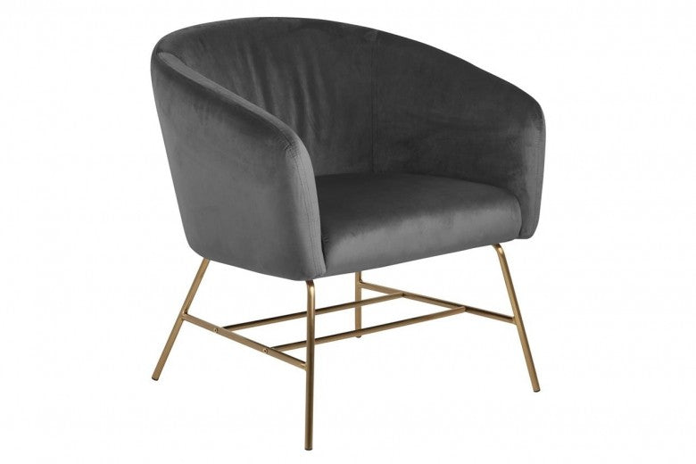 Fauteuil fixe tapissé de tissu et pieds en métal Velours Ramsey Gris Foncé / Laiton, l72XA67xH76 cm