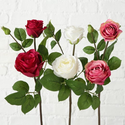 Fil de fleurs artificielles Mini Rose Rose / Vert, Modèles Assortis, H60 cm