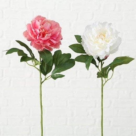 Fleur artificielle Pivoine Blanc / Rose, H66 cm, 2 pièces