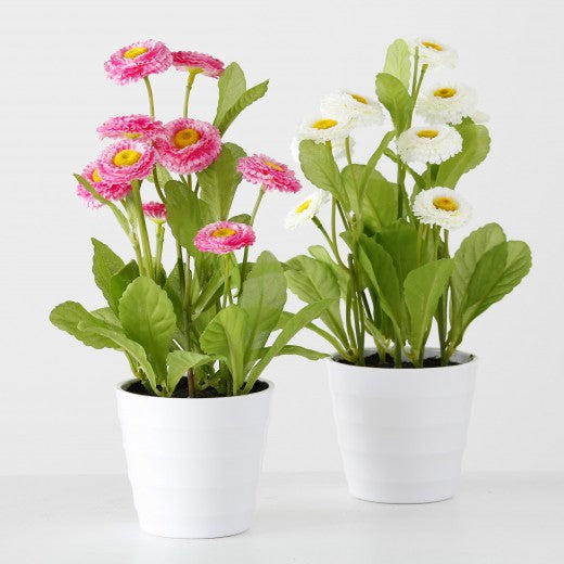 Fleurs artificielles en pot Bellis Multicolore, Modèles Assortis, Ø9xH30 cm